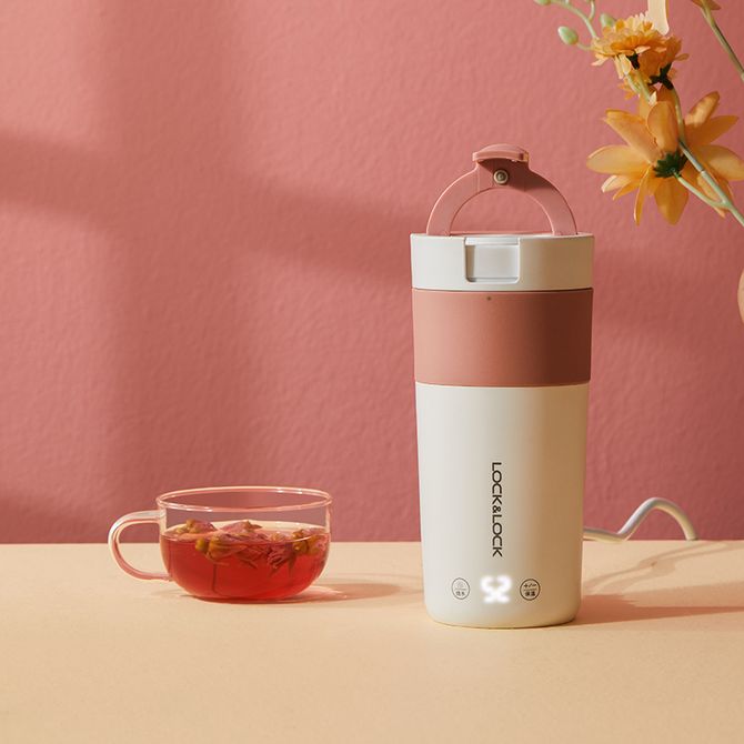乐扣乐扣 电热水杯烧水壶便携式保温350ml迷你家用加热旅行外出烧水杯EJK-3115PIK粉色