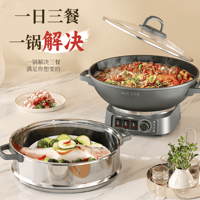 奥克斯多功能电锅定时款34CM双笼 5.5L