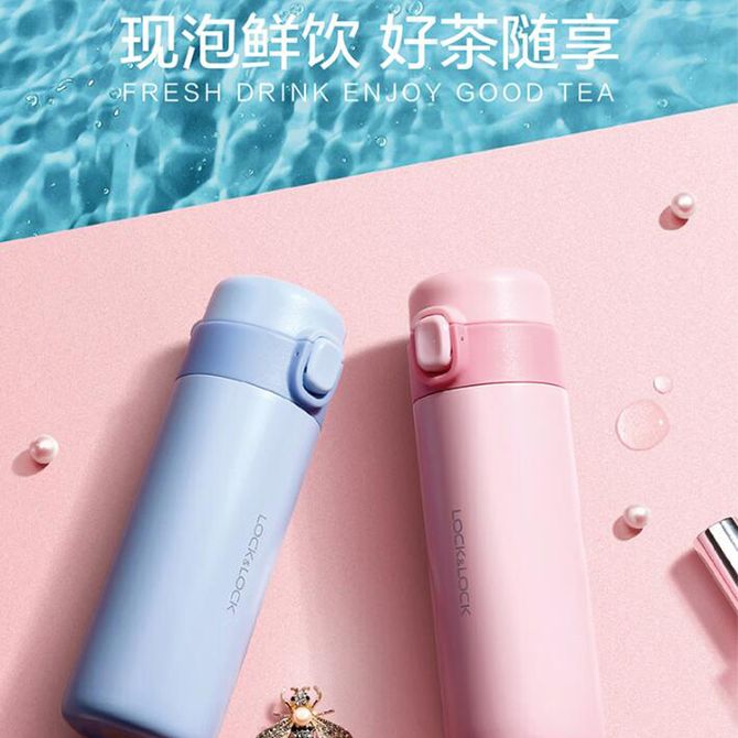 乐扣乐扣 雅纷弹跳保温杯粉色300ml 弹盖保温杯女士学生内胆水杯LHC6540FU