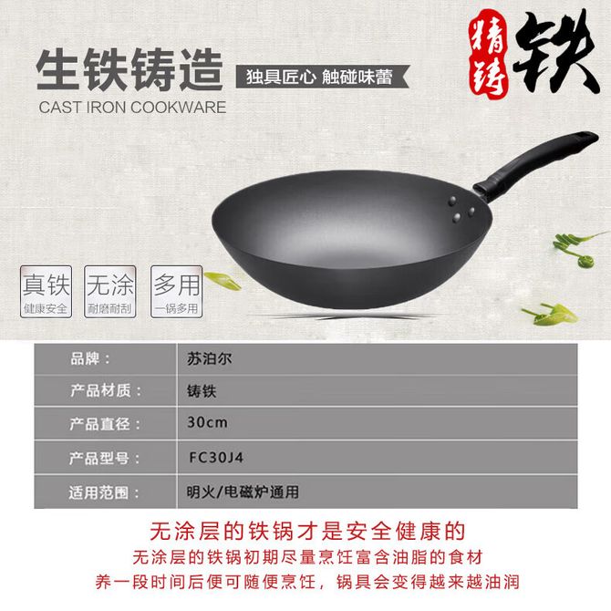 苏泊尔(SUPOR) 炒锅 精铸铁锅无盖燃气灶电磁炉通用直径30cm FC30J4