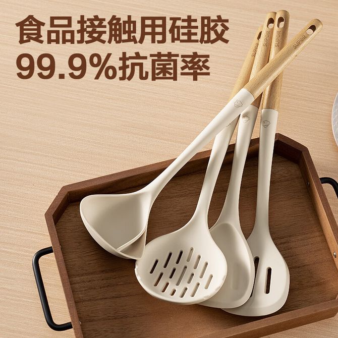 苏泊尔(SUPOR) 抗菌不粘锅专用炒锅煎锅白色硅胶五件套 TK24007E