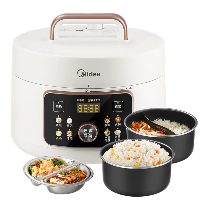 组合销售 产品介绍 产品规格 售后服务 产品咨询 发现好货 苏泊尔(SUPOR)电压力锅 6升大容量 智能触控 球釜双胆 开盖收汁 一键排压 SY-60YC8001Q 高压锅 16900 里程 苏泊尔(SUPOR) 5L电压力锅家用电高压锅双胆高压电饭锅煮饭智能预约 SY-50YC8186 11300 里程 美的/Midea 电压力锅 【一锅双胆】5L全自动家用智能预约 上蒸下煮 不粘双胆煲汤炖肉 YL50Q3-451 10900 里程 美的/Midea 电压力锅 【双胆】5升大容量电饭煲全自动智能饭锅多功能高压锅 24小时智能预约 MY-E523 10400 里程 九阳/Joyoung 电压力锅5L家用电饭锅压力煲电高压锅煮饭锅电饭锅电饭煲全自动智能预约 Y-50C31 11000 里程
