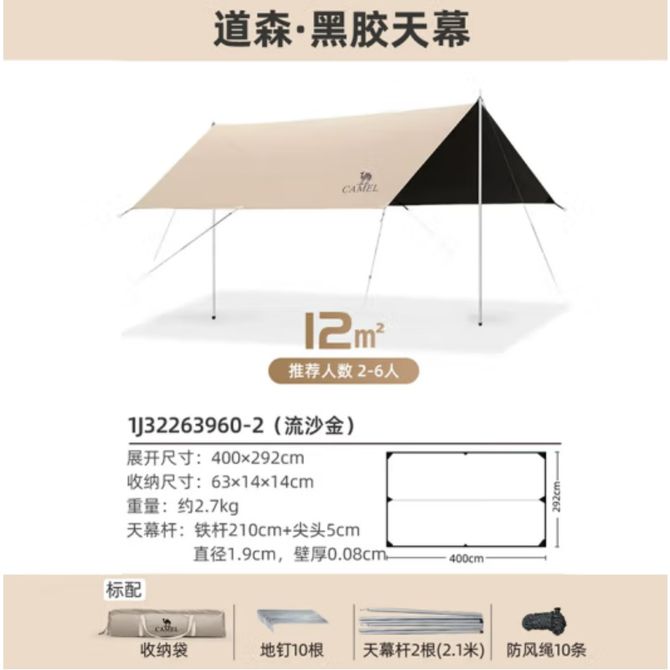 骆驼/Camel 户外精致露营黑胶天幕帐篷野外防雨防晒野营遮阳凉棚 1J32263960-2B流沙金【黑胶】12㎡ 1J32263960-2B流沙金【黑胶】12㎡ 兑换价格 16600 里程 会员卡别 终身白金卡 白金卡 金卡 银卡 普通卡 儿童卡 商品已下架 1. 请联系卖家咨询 2. 逛逛四季枫户外用品店选择其他商品 组合销售 产品介绍 产品规格 售后服务 产品咨询 发现好货 北山狼/BSWolf 户外月亮椅露营折叠椅便携式野餐沙滩休闲躺椅 卡其色-成人款 2600 里程 徽羚羊 帐篷防雨布天幕户外遮阳超轻便携大凉棚野露营防雨遮阳棚 300*295CM 5000 里程 创悦(CREAJOY)便携式帐篷 2-3人室内外露营遮阳帐篷 200*150*115cm CY-5800蓝色 5300 里程 探险者(TAN XIAN ZHE) 帐篷 户外便携式折叠露营装备全自动帐篷 3-4人银胶速开帐篷 (200*145*120cm) 8500 里程 创悦(CREAJOY)全自动帐篷 2-3人野营露营免安装速开帐篷 200*150*135cm CY-5905A 绿色 8700 里程