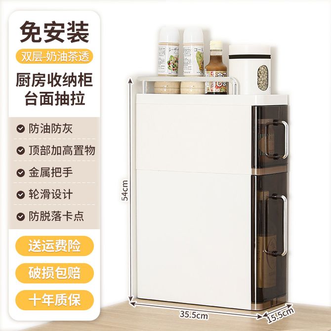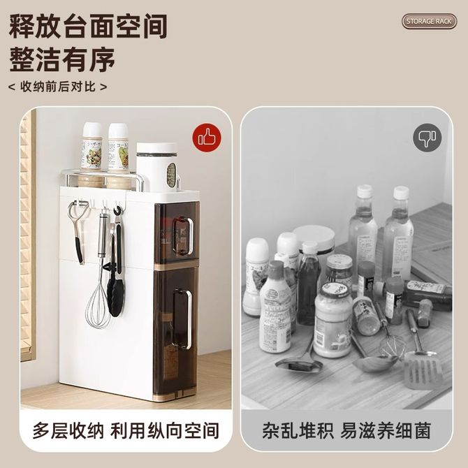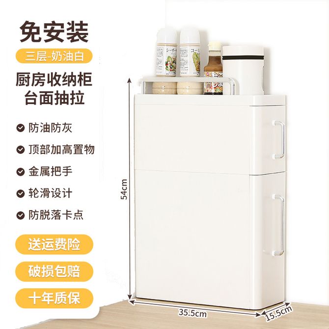 友耐/Younal 家用厨房调料置物架 3层多功能收纳架 家用台面抽拉式靠墙一体夹缝防尘多功能柜收纳