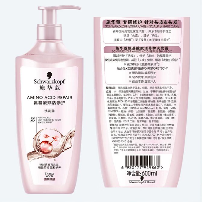 施华蔻 洗发露600ml 氨基酸赋活修护洗发露无硅油洗发水改善毛躁柔顺温和