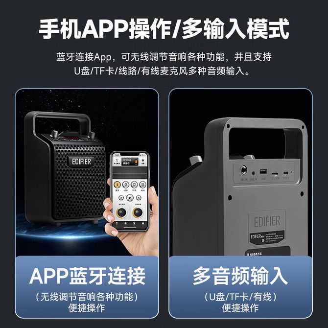 漫步者/EDIFIER PP205S 云白色/暮云灰 双麦版手提便携式蓝牙音箱广场舞音响教学扩音器 移动户外音响 K歌音箱 商超导购 双麦版手提便携式蓝牙音箱广场舞音响教学扩音器 移动户外音响 K歌音箱 商超导购 兑换价格 24400 里程 会员卡别 终身白金卡 白金卡 金卡 银卡 普通卡 儿童卡 服务 由 华睿博望 发货并提供售后 颜色: 白色 灰色 购买数量: 件 库存件 配送地址: 立即购买 加入购物车 成功添加到购物车 关闭 购物车共有 种商品 总金额为: 组合销售 产品介绍 产品规格 售后服务 产品咨询 发现好货 飞利浦(PHILIPS) TAS2519 双麦克风 家庭k歌音响麦克风一体家用ktv套装话筒卡拉ok一体机唱歌神器户外蓝牙音箱 8700 里程 得力/Deli 无线领夹麦克风 直播主播短视频户外拍摄收音智能降噪手机电脑音箱收音麦一拖一苹果安卓通用MN510 2800 里程 纽曼 (Newmine)麦克风 手机全民K歌无线蓝牙话筒掌上KTV MC29 9700 里程 唱吧 小巨蛋麦克风 C20 电视家庭K歌话筒音响一体全民儿童无线蓝牙 10000 里程 飞利浦(PHILIPS)麦克风 台式电脑话筒网课游戏直播唱歌话筒有线 SHM1000 3900 里程