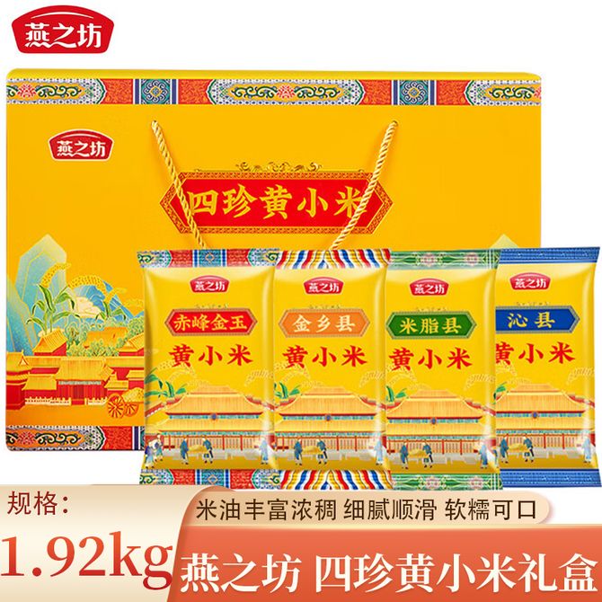燕之坊 四珍黄小米礼盒1.92kg小米粥家庭早餐煮粥杂粮粗粮 配置:四珍黄小米礼盒1.92kg/盒;(内配:沁县黄小米80gx6、赤峰金玉黄小米80gx6、米脂县黄小米80gx6、金乡县黄小米80gx6) 兑换价格 3300 里程 会员卡别 终身白金卡 白金卡 金卡 银卡 普通卡 儿童卡 服务 由 壮乡优品生活馆 发货并提供售后 规格: 礼盒 购买数量: 件 库存件 配送地址: 立即购买 加入购物车 成功添加到购物车 关闭 购物车共有 种商品 总金额为: 组合销售 产品介绍 产品规格 售后服务 产品咨询 发现好货 金熊 泰国茉莉 香米 1kg 泰国原料进口 1300 里程 十月稻田当季新米辽河长粒香大米 5kg 东北大米 香米 粳米 十斤 2100 里程 源头说 五常有机稻花香新米 东北大米 2.5kg(双重防伪认证) 4200 里程 十月稻田 长粒香大米2.5kg 东北大米5斤 东北香米 1300 里程 稻可道雪地黑土东北珍珠大米5kg 1600 里程