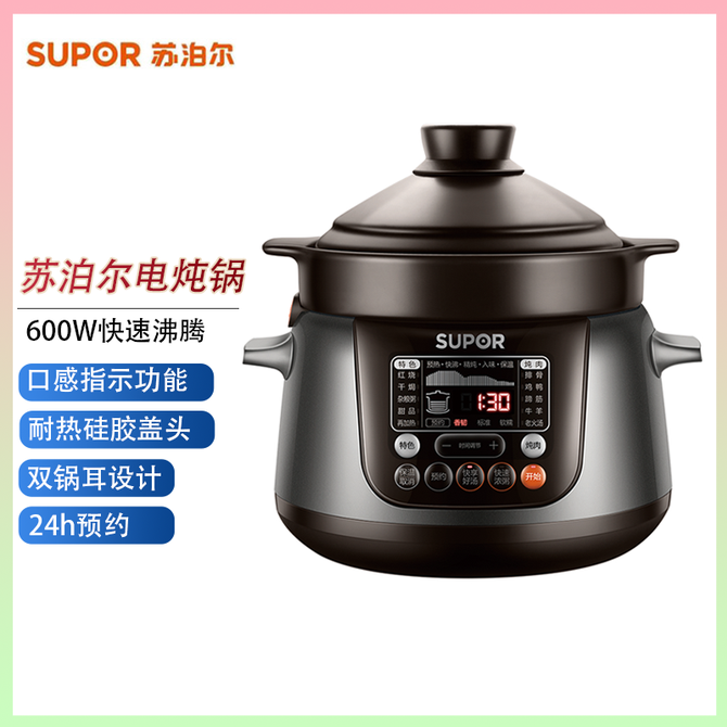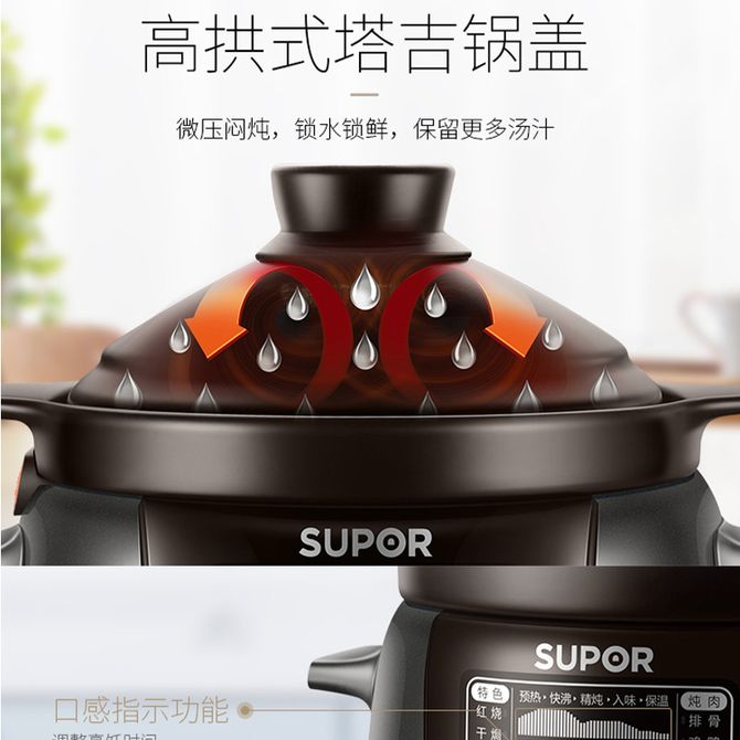 苏泊尔/Supor 炽陶电炖锅高拱式塔吉锅盖12大烹饪功能陶胆内置感温实时感知烹饪过程精控快速电炖锅开启煲炖新食代 600W快速沸腾 24h预约 双锅耳设计 口感指示功能 耐热硅胶盖头 兑换价格 17400 里程 会员卡别 终身白金卡 白金卡 金卡 银卡 普通卡 儿童卡 服务 由 北京致诚博雅贸易有限公司 发货并提供售后 颜色: 其他 购买数量: 件 库存件 配送地址: 立即购买 加入购物车 成功添加到购物车 关闭 购物车共有 种商品 总金额为: