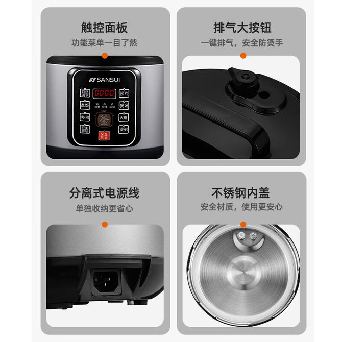 组合销售 产品介绍 产品规格 售后服务 产品咨询 发现好货 苏泊尔(SUPOR)电压力锅 6升大容量 智能触控 球釜双胆 开盖收汁 一键排压 SY-60YC8001Q 高压锅 16900 里程 美的/Midea 电压力锅家用5L大容量多功能高压锅双胆一键收汁智能预约不粘电高压锅电饭锅煮粥煲汤锅 一锅双胆【一键收汁入味】 YL50M1-702 10600 里程 苏泊尔(SUPOR) 5L电压力锅家用电高压锅双胆高压电饭锅煮饭智能预约 SY-50YC8186 11300 里程 美的/Midea 电压力锅 【一锅双胆】5L全自动家用智能预约 上蒸下煮 不粘双胆煲汤炖肉 YL50Q3-451 10900 里程 美的/Midea 电压力锅 高压锅家用电压力煲智能预约电饭煲大容量多功能定时预约电饭煲3-8人单胆旋钮款4L MY-E4809 8700 里程