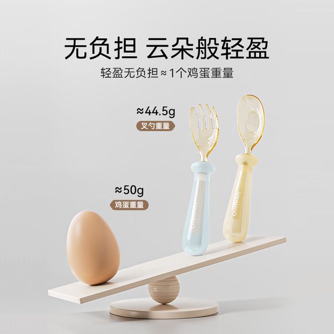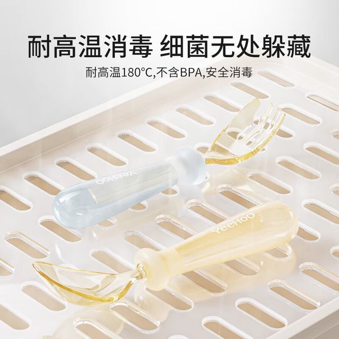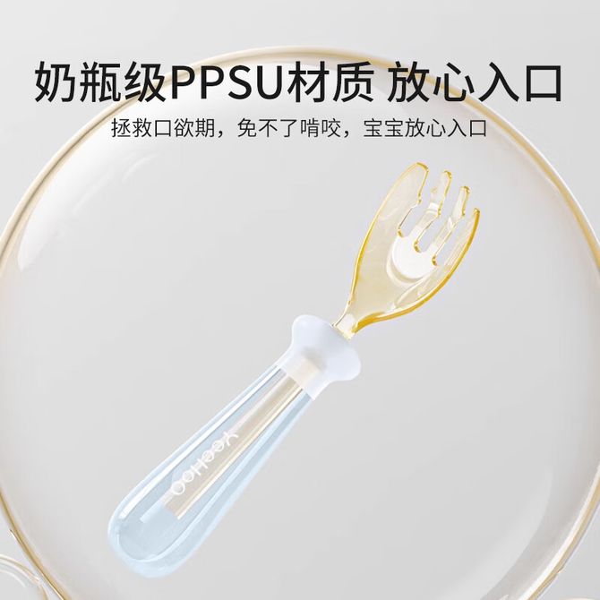 英氏(YEEHOO) 宝宝PPSU元宝勺子婴儿辅食学吃饭训练用叉勺儿童自主进食餐具 宝宝元宝叉勺套装