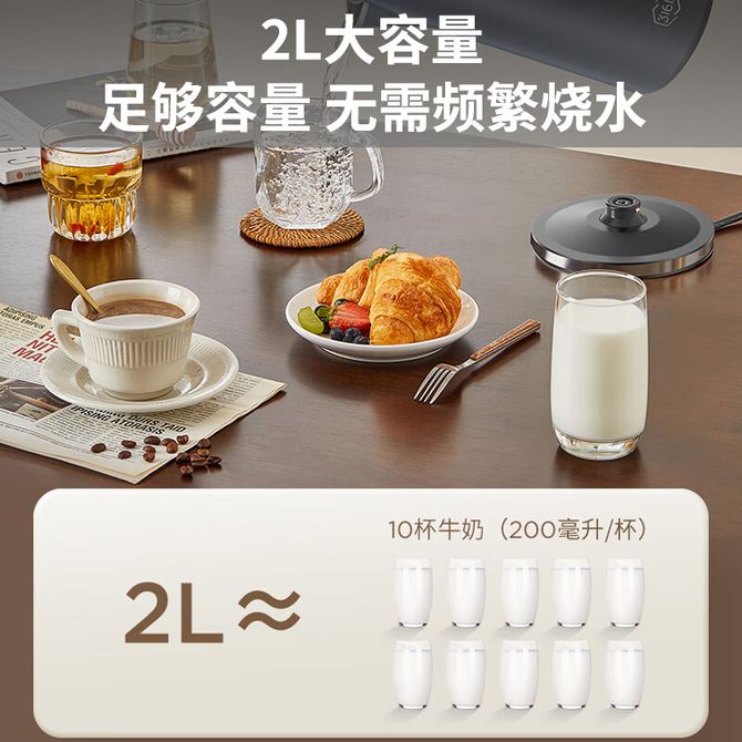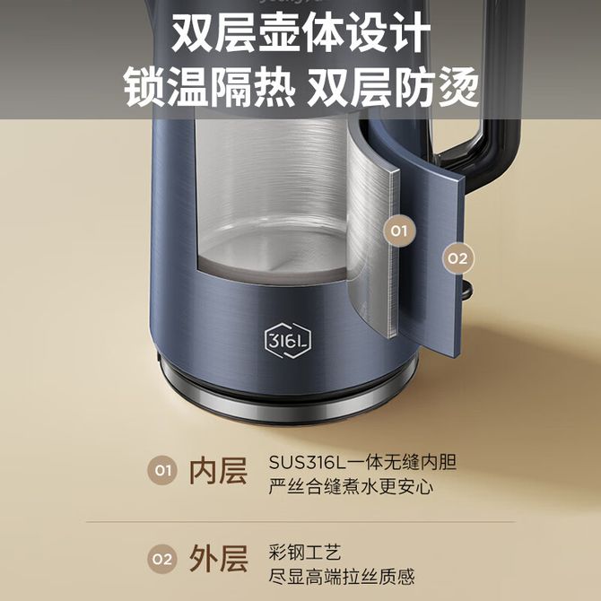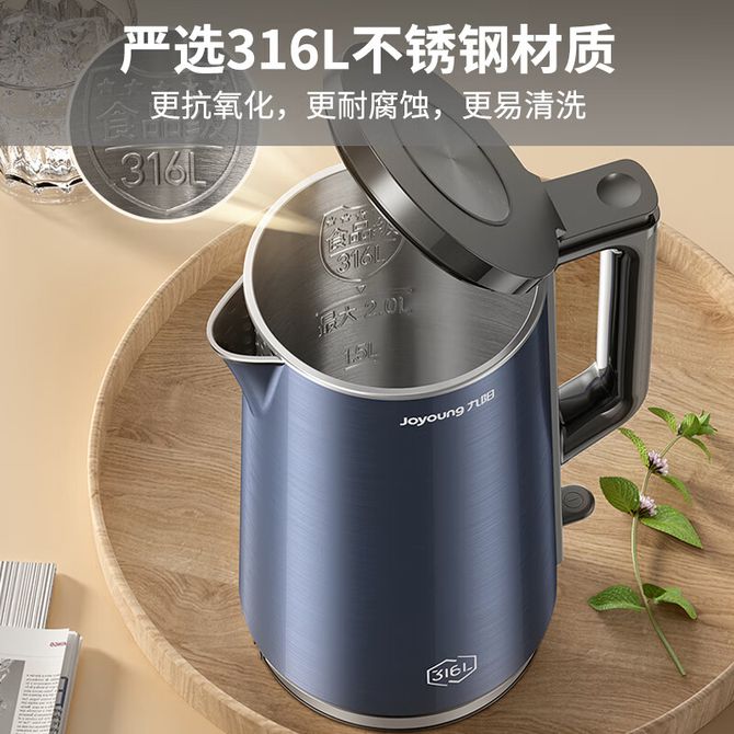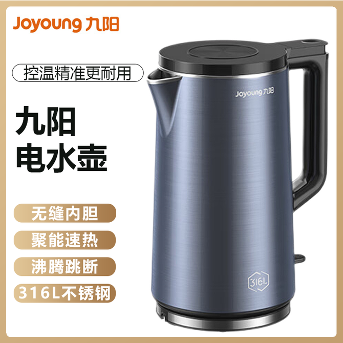 九阳/Joyoung 电水壶2L精致容量双层精钢壶体316L不锈钢内胆大功率速热家用电水壶电热水壶