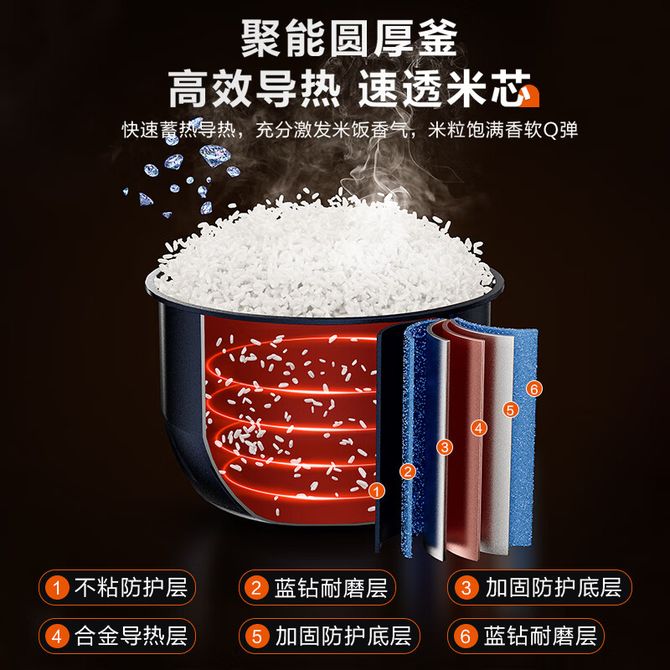 苏泊尔 电饭煲 家用智能厚釜蓝钻内胆煮饭不粘锅 SF40FC871 4L容量