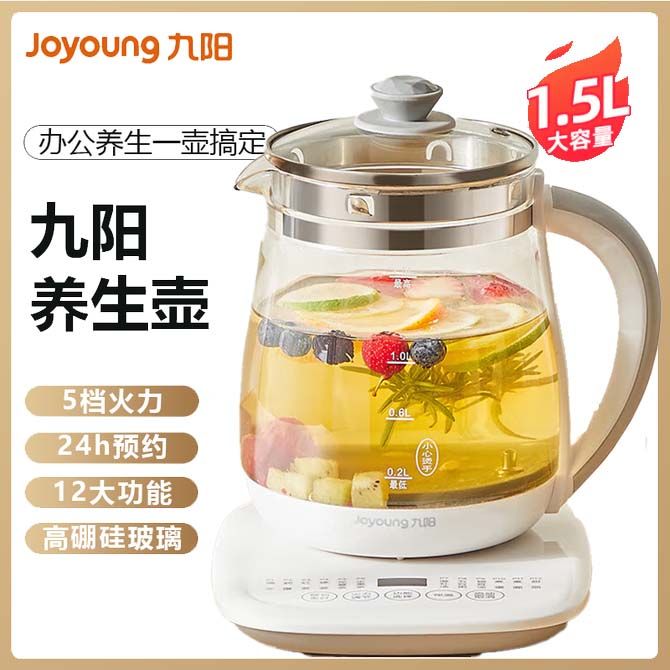 组合销售 产品介绍 产品规格 售后服务 产品咨询 发现好货 九阳/Joyoung 养生壶1.5L茶具电茶壶煮茶壶花茶壶玻璃煮茶器煎药壶中药锅药膳电水壶烧水壶 3900 里程 九阳/Joyoung 养生壶迷你玻璃花茶壶煮茶器 12大功能11档温度 电水壶热水壶烧水壶 1.5L DGD1506BQ 3900 里程 美的/Midea 养生壶 1.5L家用多功能小型全自动办公室烧水壶加厚玻璃煮茶热水壶 MK-YS15P201 4200 里程 美的/Midea 养生壶 1.5L家用养生壶全自动玻璃烧水壶24h预约烧水壶12小时防干烧保护智能恒温 MK-YS15P202 3700 里程 美的/Midea 养生壶 1.5L全自动电热水壶 24h预约12小时智能恒温 14大功能11档控温 花茶壶煮茶器MK-Y12Q 3500 里程