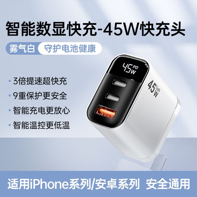 塔菲克 45W三口充电器头超级快充多口智能数显usb插头通用多功能白色 单头 45W三口智能数显,低温快充不伤机 兑换价格 3400 里程 会员卡别 终身白金卡 白金卡 金卡 银卡 普通卡 儿童卡 服务 由 上海礼小二数码专营店 发货并提供售后 插口: 多口 购买数量: 件 库存件 配送地址: 立即购买 加入购物车 成功添加到购物车 关闭 购物车共有 种商品 总金额为: 组合销售 产品介绍 产品规格 售后服务 产品咨询 发现好货 品胜(PISEN) KY-33智能USB排插 3位5孔3位USB口智能插座 安全保护门 多功能排插/插线板 1.8米 新国标 4400 里程 品胜(PISEN)苹果12 PD快充套装20W充电器 2900 里程 品胜(PISEN) 20W双口快充USB+Type-C充电器插头 适用手机苹果13/iPhone12/11华为nova9荣耀vivo小米OPPO平板ipad 2600 里程 品胜(PISEN) PD20W充电头数据线套装 苹果充电器华为小米手机充电器套装 3900 里程 倍思 小酷苹果氮化镓充电器20W充电头PD数据线 快充套装 带线 白色 2400 里程