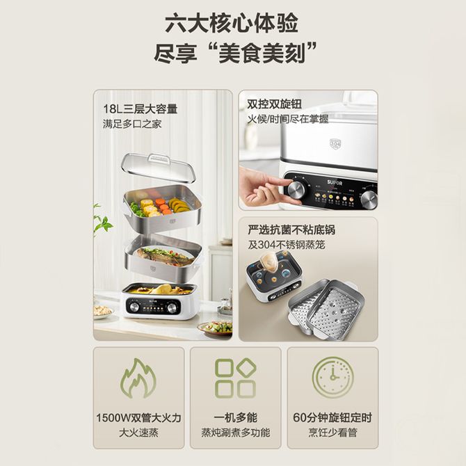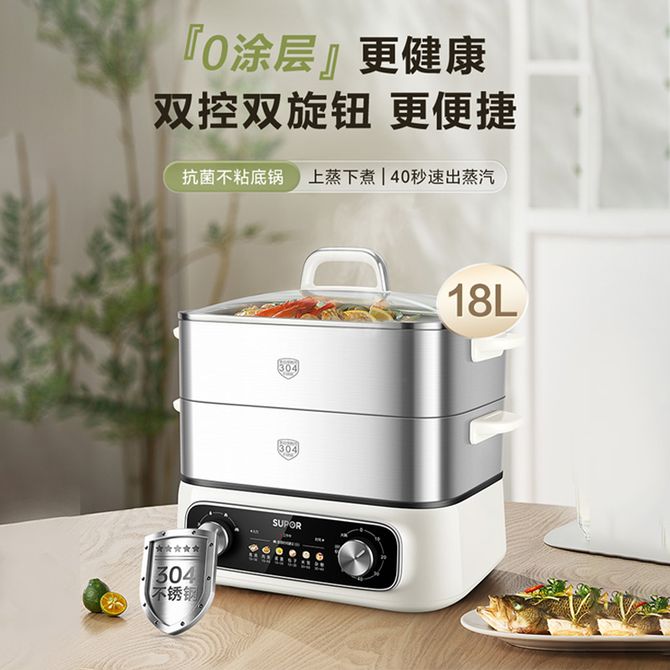 苏泊尔(SUPOR) 电蒸锅18L家用大容量不锈钢电煮锅多功能锅蒸包子锅电热锅蒸煮炖一体