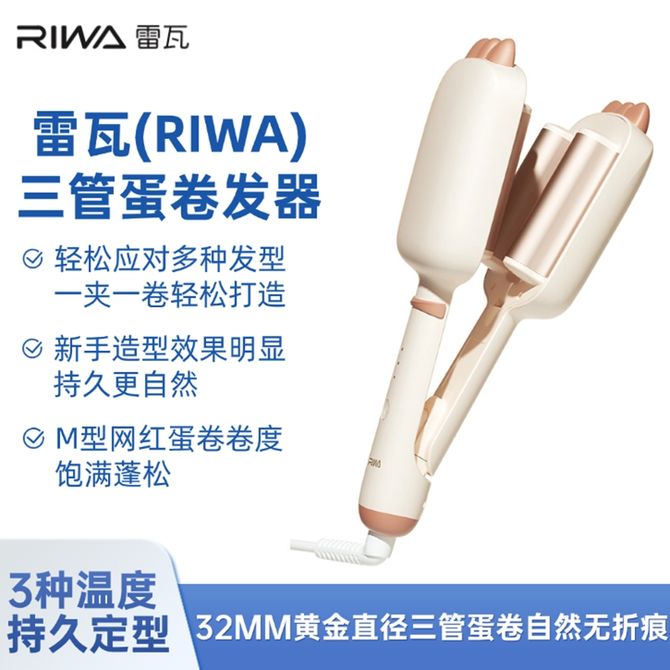 雷瓦/Riwa 蛋卷卷发棒三管蛋卷棒深V蛋卷夹32MM负离子法式蛋蛋卷