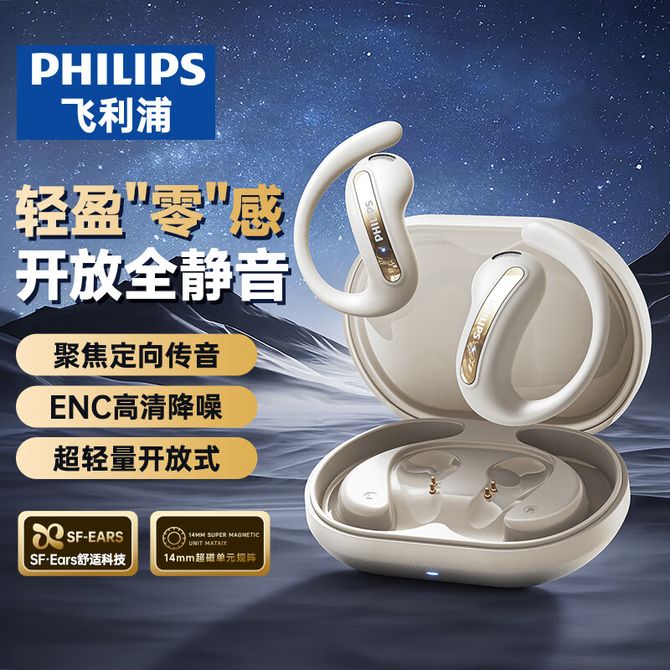 飞利浦(PHILIPS) 蓝牙耳机 挂耳开放式 骨传导概念无线耳机运动音乐降噪 TAQ2120
