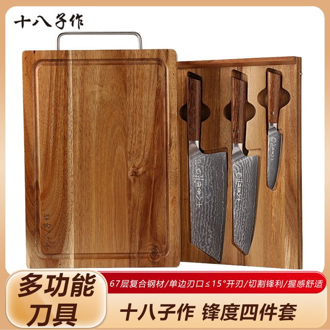 十八子作 锋度四件套 家用厨房水果刀多用刀切片刀刀架刀具套装菜刀组合切割锋利握感舒适