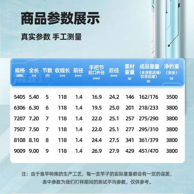 组合销售 产品介绍 产品规格 售后服务 产品咨询 发现好货 光威闪电小矶短节便携矶钓竿超轻超硬矶竿碳素远投钓鱼竿手海两用 4700-7500 里程 光威(GW) 清月鲫超轻超细鱼竿手竿37调鲫鱼竿野钓鲫杆台钓竿渔具清月鲫 6500-13000 里程 光威(GW) 影峰休闲二代鱼竿台钓竿28调4H碳素超轻超硬手杆综合竿 5300-10100 里程 佳钓尼 鱼竿 新款鲫鱼竿 黑坑钓鱼竿 手竿 野钓鱼杆(伏魔鲫小冈豆) 9000-16100 里程 佳钓尼 超短超轻超硬钓鱼竿 长空溪流竿 短节溪流竿 鱼竿 渔具台钓 3900-6100 里程