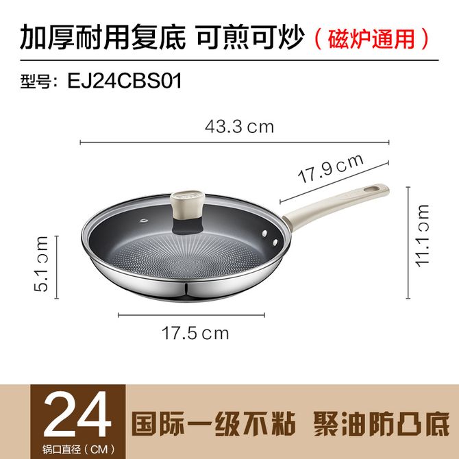 苏泊尔(SUPOR) 平底锅不粘锅家用不锈钢平底煎锅不沾牛排煎锅电磁炉通用EJ24CBS01