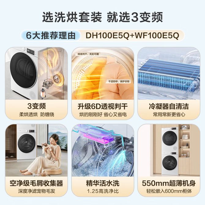 海信/Hisense 10公斤滚筒洗衣机+三变频热泵烘干机 6D透视判干 洗烘套装 WF100E5Q+DH100E5Q 白色 柔烘透烘防缠绕 升级6D透视判干 精华活水洗 兑换价格 591300 里程 会员卡别 终身白金卡 白金卡 金卡 银卡 普通卡 儿童卡 服务 由 存悦商贸 发货并提供售后 洗衣机容量: 10kg 洗衣机产品类型: 滚筒 颜色: 白色 购买数量: 件 库存件 配送地址: 立即购买 加入购物车 成功添加到购物车 关闭 购物车共有 种商品 总金额为: