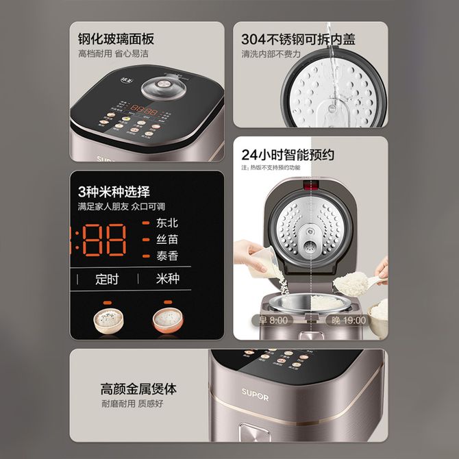 组合销售 产品介绍 产品规格 售后服务 产品咨询 发现好货 苏泊尔(SUPOR) 电饭煲电饭锅4L大容量 不粘内胆4-6个人前置大屏面板24小时预约上蒸下煮多功能家用智能SF40FC0063 8300 里程 奥克斯/AUX 电饭煲3L电饭锅 2-3人小型预约智能电饭煲VK-309F2 5100 里程 苏泊尔(SUPOR) 迷你电饭煲家用电饭锅2-3人3L小容量蓝钻不粘内胆快煮饭功能智能预约小型多功能SF30FC0187 6100 里程 美菱/MELNG 电饭煲3L触控式预约定时MF-LC3005 4400 里程 苏泊尔(SUPOR) 煮饭煮粥智能预约多功能一锅多用小型微压电饭锅30FC0187 7200 里程
