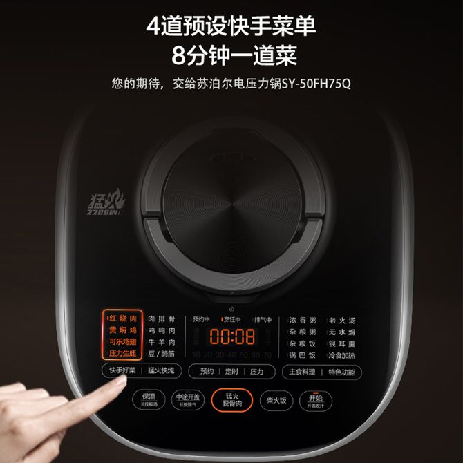 组合销售 产品介绍 产品规格 售后服务 产品咨询 发现好货 苏泊尔(SUPOR)电压力锅 6升大容量 智能触控 球釜双胆 开盖收汁 一键排压 SY-60YC8001Q 高压锅 16900 里程 苏泊尔(SUPOR) 5L电压力锅家用电高压锅双胆高压电饭锅煮饭智能预约 SY-50YC8186 11300 里程 美的/Midea 电压力锅 【一锅双胆】5L全自动家用智能预约 上蒸下煮 不粘双胆煲汤炖肉 YL50Q3-451 10900 里程 美的/Midea 电压力锅 【双胆】5升大容量电饭煲全自动智能饭锅多功能高压锅 24小时智能预约 MY-E523 10400 里程 九阳/Joyoung 电压力锅5L家用电饭锅压力煲电高压锅煮饭锅电饭锅电饭煲全自动智能预约 Y-50C31 11000 里程