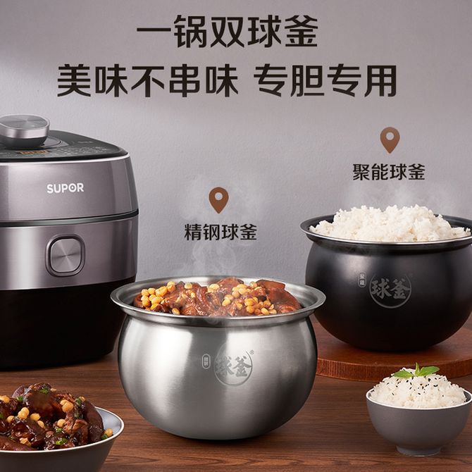 组合销售 产品介绍 产品规格 售后服务 产品咨询 发现好货 苏泊尔(SUPOR)电压力锅 6升大容量 智能触控 球釜双胆 开盖收汁 一键排压 SY-60YC8001Q 高压锅 16900 里程 苏泊尔(SUPOR) 5L电压力锅家用电高压锅双胆高压电饭锅煮饭智能预约 SY-50YC8186 11300 里程 美的/Midea 电压力锅 【一锅双胆】5L全自动家用智能预约 上蒸下煮 不粘双胆煲汤炖肉 YL50Q3-451 10900 里程 美的/Midea 电压力锅 【双胆】5升大容量电饭煲全自动智能饭锅多功能高压锅 24小时智能预约 MY-E523 10400 里程 九阳/Joyoung 电压力锅5L家用电饭锅压力煲电高压锅煮饭锅电饭锅电饭煲全自动智能预约 Y-50C31 11000 里程