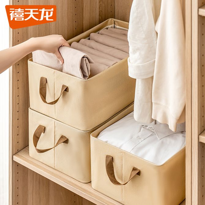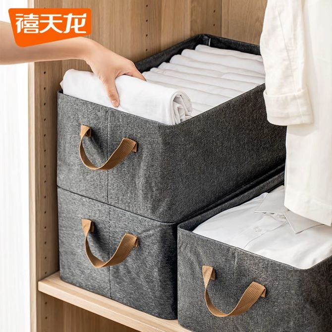 禧天龙 布艺收纳箱家用抽屉衣柜衣服裤子分隔储物整理箱加大号整理箱 47*28*20cm 【加大号灰色】 甄选面料【超大容量 分类整理】