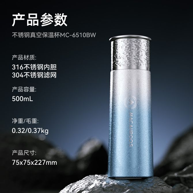 MACAIIROOS 不锈钢真空保温杯 大容量便携高颜值水杯500mL