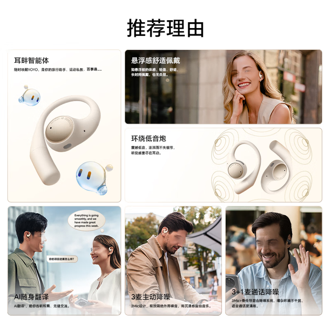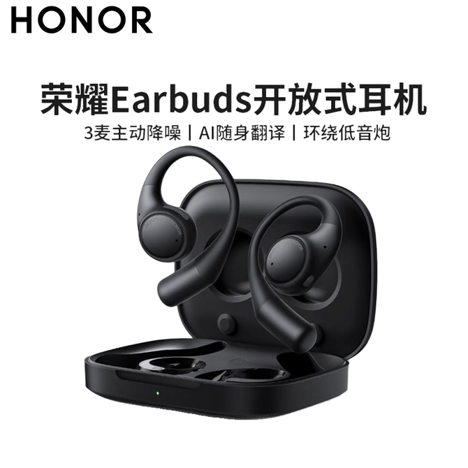 荣耀/honor Earbuds开放式耳机 挂耳式AI耳机 三麦通话降噪 AI同频翻译 环绕低音炮音效
