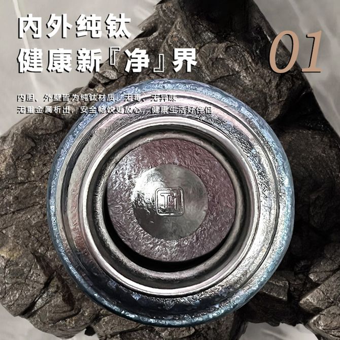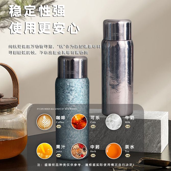 (此款为480mL钛原色保温杯 详情共用)内外纯钛 可耐酸碱 抑菌保鲜 保温保冷 内置滤网