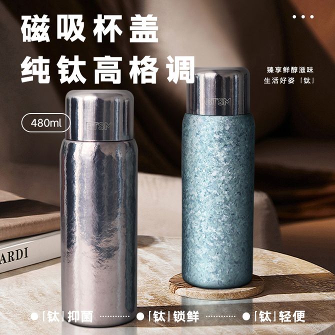 BTSM 纯钛磁吸保温杯480mL 商务办公保温保冷水杯纯钛内胆抑菌保鲜便携随行杯磁吸盖 钛原色
