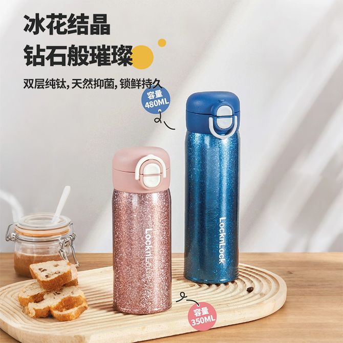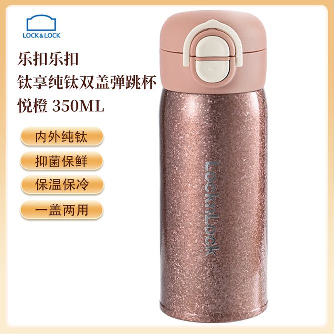 乐扣乐扣 钛享纯钛双盖弹跳杯350ML 内外纯钛保温杯办公商务水杯便携随行杯 悦橙