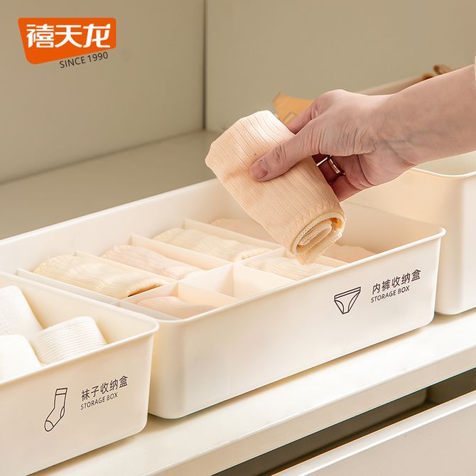 禧天龙 时尚收纳盒内衣袜子内裤分格收纳盒组合三件套优选材质无异味叠加收纳够结实带盖设计防尘防虫家用神器衣柜内衣裤分类整理白色三件套【无格+十格+十五格】