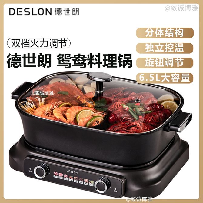 德世朗(DESLON) 料理锅家用多功能鸳鸯锅电煮锅电热锅多用途锅鸳鸯分区精控火 分体结构 独立控温 旋钮调节 6.5L大容量 兑换价格 12600 里程 会员卡别 终身白金卡 白金卡 金卡 银卡 普通卡 儿童卡 服务 由 北京致诚博雅贸易有限公司 发货并提供售后 颜色: 其他 购买数量: 件 库存件 配送地址: 立即购买 加入购物车 成功添加到购物车 关闭 购物车共有 种商品 总金额为: