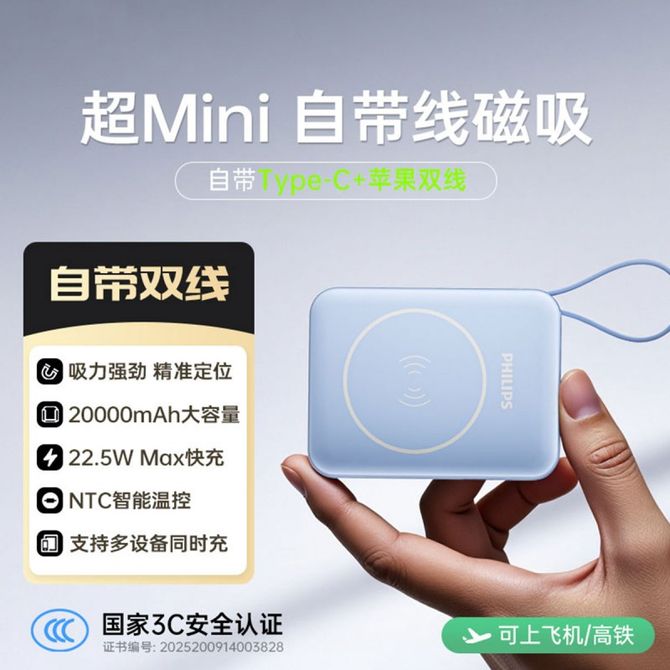 飞利浦/Philips 【国家3C认证】20000mAh充电宝可携带上飞机自带双线移动电源22.5W超级快充 3C认证 可上飞机 机身有3C标识 兑换价格 8700 里程 会员卡别 终身白金卡 白金卡 金卡 银卡 普通卡 儿童卡 服务 由 贝洛美智能科技精品馆 发货并提供售后 电池容量: 10001mAh-20000mAh 颜色: 蓝色 购买数量: 件 库存件 配送地址: 立即购买 加入购物车 成功添加到购物车 关闭 购物车共有 种商品 总金额为: 组合销售 产品介绍 产品规格 售后服务 产品咨询 发现好货 ZNNCO 充电宝20000毫安时超薄小巧迷你自带线大容量快充移动电源便携苹果华为小米2万mAh手机 4200 里程 睿量/Remax 磁吸无线充电宝 Magsafe快充 5000mAh超薄小巧便携移动电源 手机背夹迷你移动电源 适用于苹果华为小米手机 RPP-107 4600 里程 雷摄 T68S【3C认证可上飞机】充电宝10000毫安 移动电源 22.5W快充丨1万毫安丨多口输出 1700 里程 纽曼(Newmine) 自带四线充电宝 3C认证 LED智能数显10000毫安移动电源 AL03 经典黑 3000 里程 雷摄 【3C认证】LS-YDZJ01 10000毫安 四线多功能移动电源 黑色 2000 里程