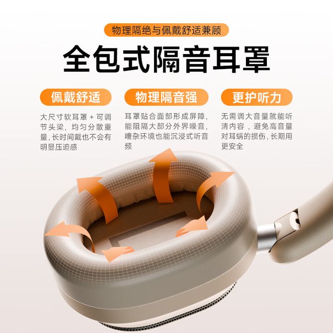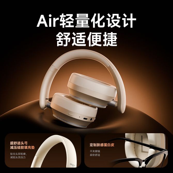 爱国者(aigo) 头戴蓝牙耳机WE800【米色】无线耳机5麦混馈ANC主动降噪双麦通话降噪AI智能翻译耳机游戏专用舒适不压耳