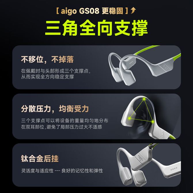 爱国者(aigo) 真骨传导蓝牙耳机GS08【绿色-64G】 游泳挂耳开放式儿童耳机64G存储MP3 IP68防水 升级软硅胶后挂