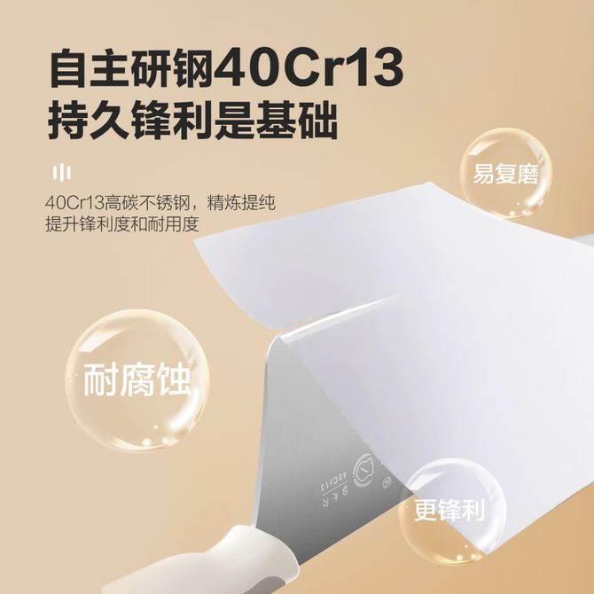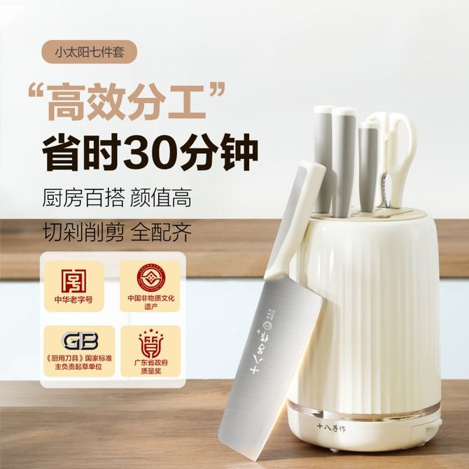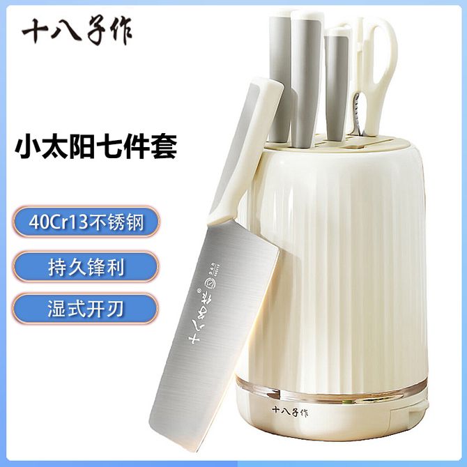 十八子作 小太阳七件套 白色奶油风家用刀具套装防滑手柄锋利刀具厨房一站式配齐