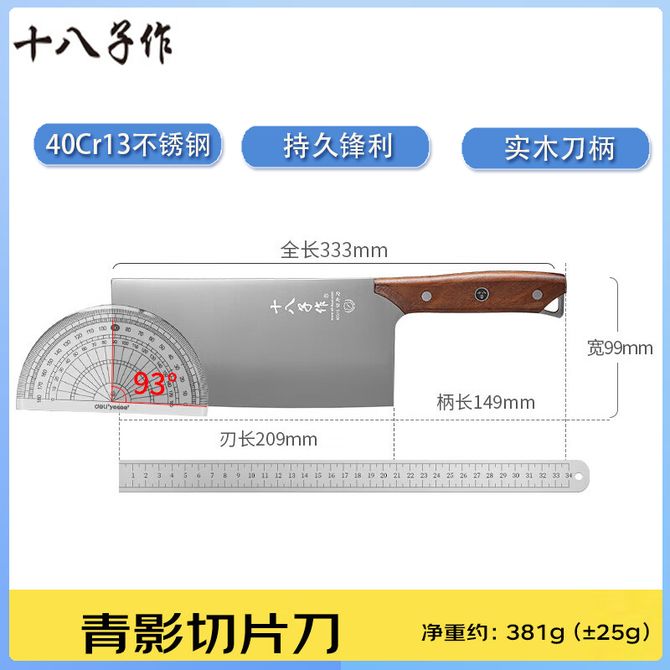 十八子作 青影切片刀 加大加宽家用锋利菜刀防锈耐用厨房专用刀具切片刀