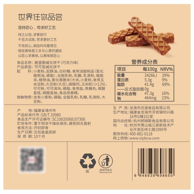 百草味 脆里脆威化85g*2盒 咔咔脆 脆香米夹心巧克力 威化饼干 下午茶小零食 脆里脆威化85g*2盒 巧克力威化脆香米夹心 兑换价格 2400 里程 会员卡别 终身白金卡 白金卡 金卡 银卡 普通卡 儿童卡 服务 由 中优盈信品质生活馆 发货并提供售后 规格: 盒装 购买数量: 件 库存件 配送地址: 立即购买 加入购物车 成功添加到购物车 关闭 购物车共有 种商品 总金额为: 组合销售 产品介绍 产品规格 售后服务 产品咨询 发现好货 稻香村 桃酥640g 老式宫廷饼干 点心传统糕点 1600 里程 鲜记 每日坚果7日装140g 混合坚果果干坚果炒货孕妇营养健康休闲零食坚果礼盒 1300 里程 稻香村 蜂蜜蛋糕330g/袋*2 糕点 小吃 早餐食品 稻香村蜂蜜蛋糕 早餐面包蛋糕 1300 里程 沃隆每日坚果B款750g礼盒(25克*30) 6100 里程 百草味 手撕面包1kg*1箱 休闲零食 1300 里程