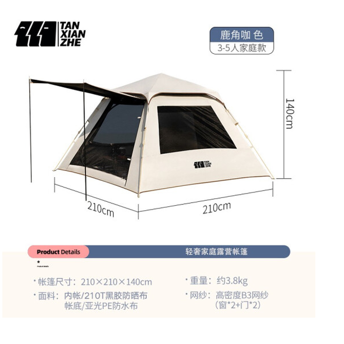 探险者(TAN XIAN ZHE)帐篷户外露营公园野外儿童家庭全自动遮阳防暴雨便携式折叠多人帐篷 210*210*140cm 兑换价格 47900 里程 会员卡别 终身白金卡 白金卡 金卡 银卡 普通卡 儿童卡 商品已下架 1. 请联系卖家咨询 2. 逛逛驴友户外用品店选择其他商品 组合销售 产品介绍 产品规格 售后服务 产品咨询 发现好货 北山狼/BSWolf 户外月亮椅露营折叠椅便携式野餐沙滩休闲躺椅 卡其色-成人款 2600 里程 徽羚羊 帐篷防雨布天幕户外遮阳超轻便携大凉棚野露营防雨遮阳棚 300*295CM 5000 里程 创悦(CREAJOY)便携式帐篷 2-3人室内外露营遮阳帐篷 200*150*115cm CY-5800蓝色 5300 里程 探险者(TAN XIAN ZHE) 帐篷 户外便携式折叠露营装备全自动帐篷 3-4人银胶速开帐篷 (200*145*120cm) 8500 里程 创悦(CREAJOY)全自动帐篷 2-3人野营露营免安装速开帐篷 200*150*135cm CY-5905A 绿色 8700 里程
