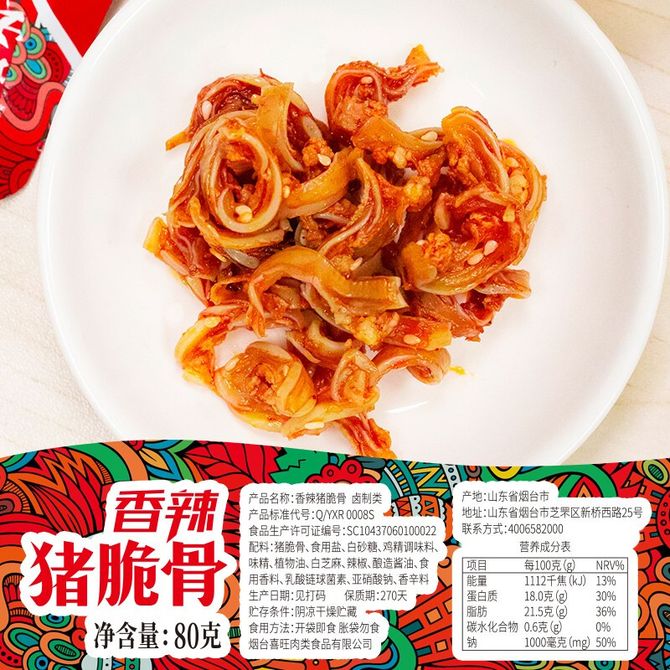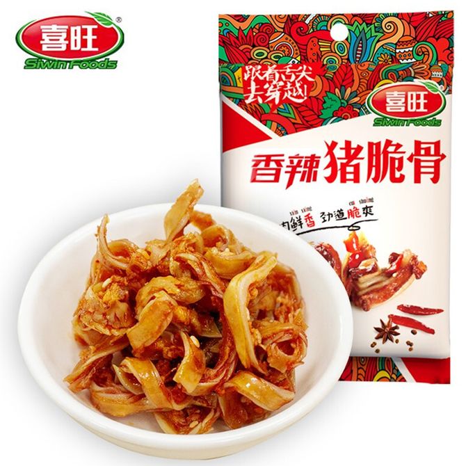 喜旺香辣猪脆骨80g×3袋 办公室小零食真空即食小包装