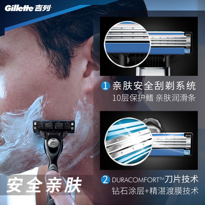 吉列(Gillette)锋速3经典1刀架9刀头(新老包装随机发货)