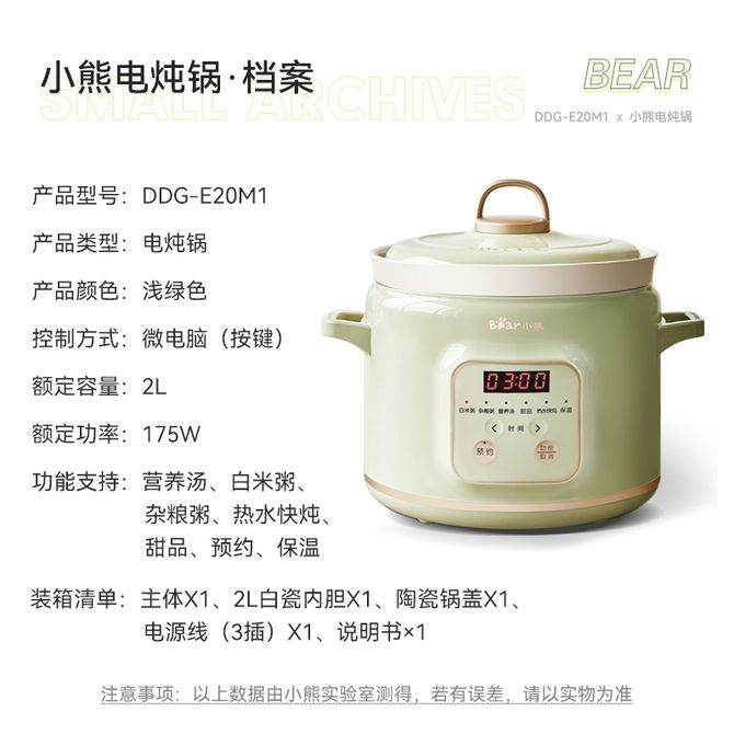 组合销售 产品介绍 产品规格 售后服务 产品咨询 发现好货 小熊/Bear 电炖锅1-2人小炖锅煮粥锅智能预约定时煲汤锅炖汤锅燕窝炖盅 4400 里程 西屋/Westinghouse 多功能电煮锅电炖锅1.6L一锅多能WFB16A 11600 里程 小熊(Bear)电炖锅电炖盅煮粥神器煲汤锅炖汤锅婴儿煮粥锅熬粥燕窝炖盅DDG-E15K2 4800 里程 利仁(Liven)电炒锅电煮锅电火锅 家用多功能小电锅电炖锅宿舍泡面锅 4.5L容量 DHG-X451 5200 里程 九阳(Joyoung)多功能电热锅 小煮锅电蒸锅 1-2人1.5L泡面电火锅 HG10-G71S 5000 里程
