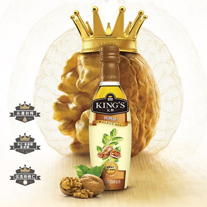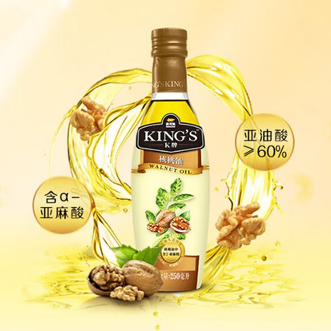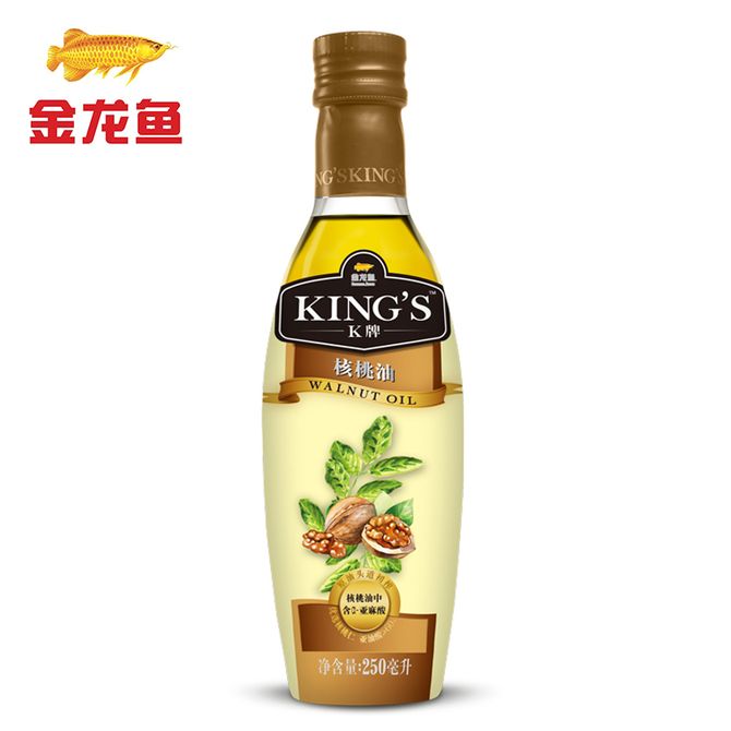 金龙鱼食用油 KING'S 核桃油 头道初榨 优质核桃仁 亚麻籽油 冷榨初榨一级 核桃油250ml