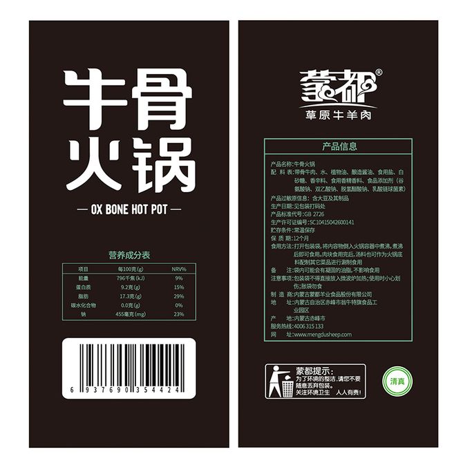 蒙都 牛骨火锅1200g*1盒(香辣/清汤) 牛大骨 加热即食 速食内蒙古牛肉火锅