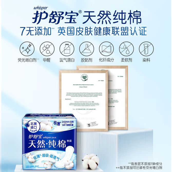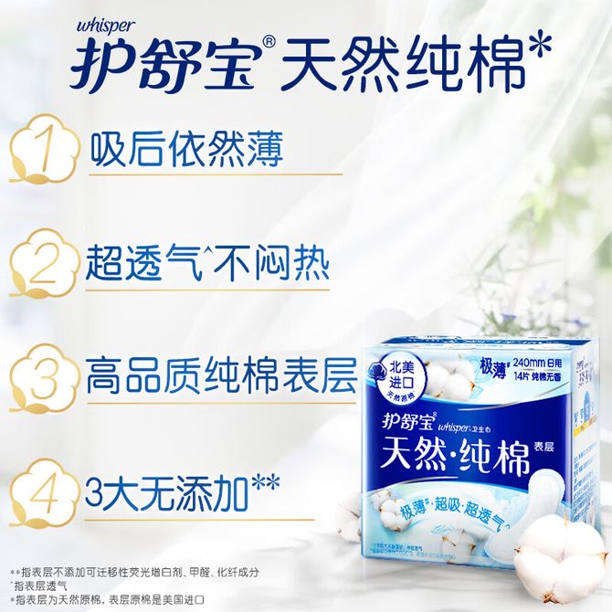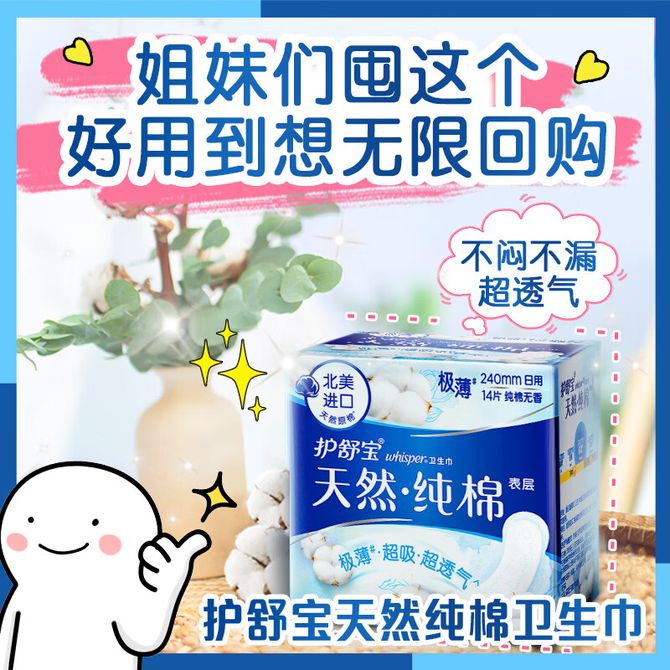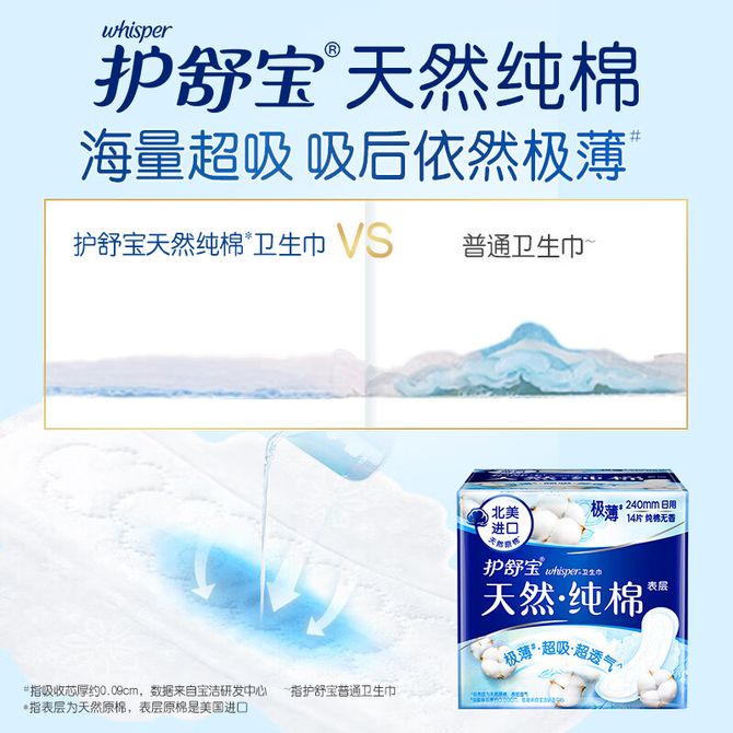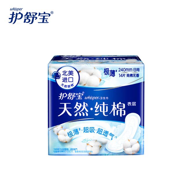 护舒宝天然纯棉卫生巾日用240mm 14片极薄超吸超透气纯净无香型姨妈巾