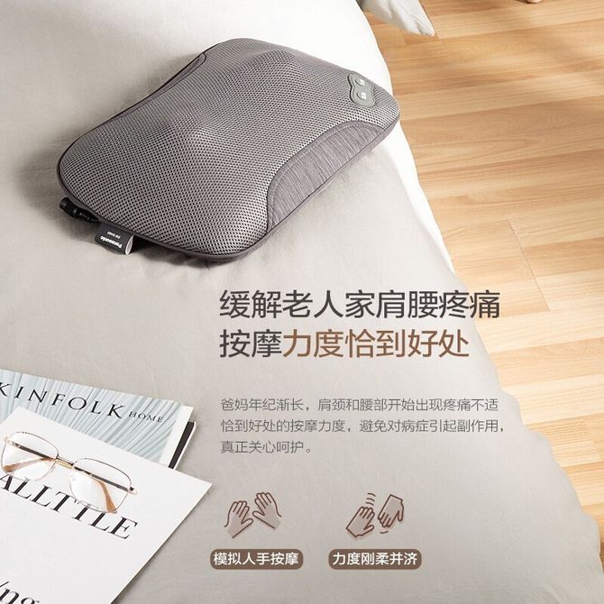 松下(Panasonic)按摩器家用按摩枕颈椎按摩器肩颈腰部背部按摩仪 EWDA60H492灰色